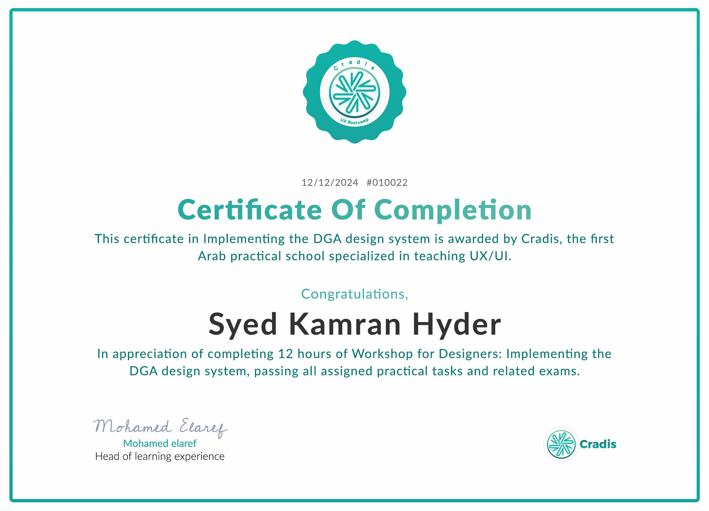 Certificate of Completion of DGA Design System